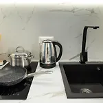 This hotel offers rooms with a dining area featuring ironing equipment and air conditioning, along with a flat-screen TV with satellite channels. Other comforts include an electric kettle, a refrigerator, and kitchenware for self-catering. They feature bathrooms with a bidet, a separate toilet, and a shower as well as a hairdryer and towels.